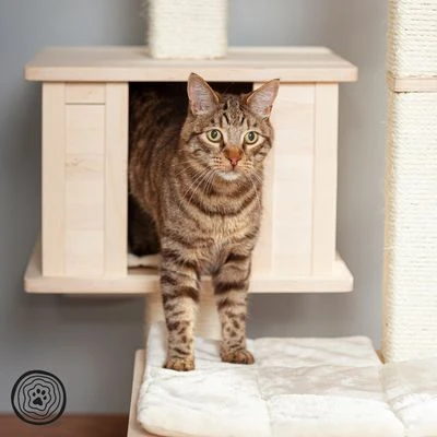 The square design gives this cat tree a modern look thanks to its clean lines. This design will save space while remaining practical. The cat tree goes with any home decor and will fit perfectly in the corner of the room.