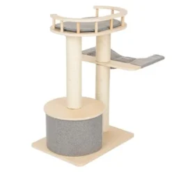 The large scratching tree offers different sleeping areas, a spacious cuddle den, a comfy hammock and a lookout platform with cosy bed. The thick scratching posts are perfect for sharpening claws and climbing. The platforms and den are made from robust real wood and can be easily washed as needed.